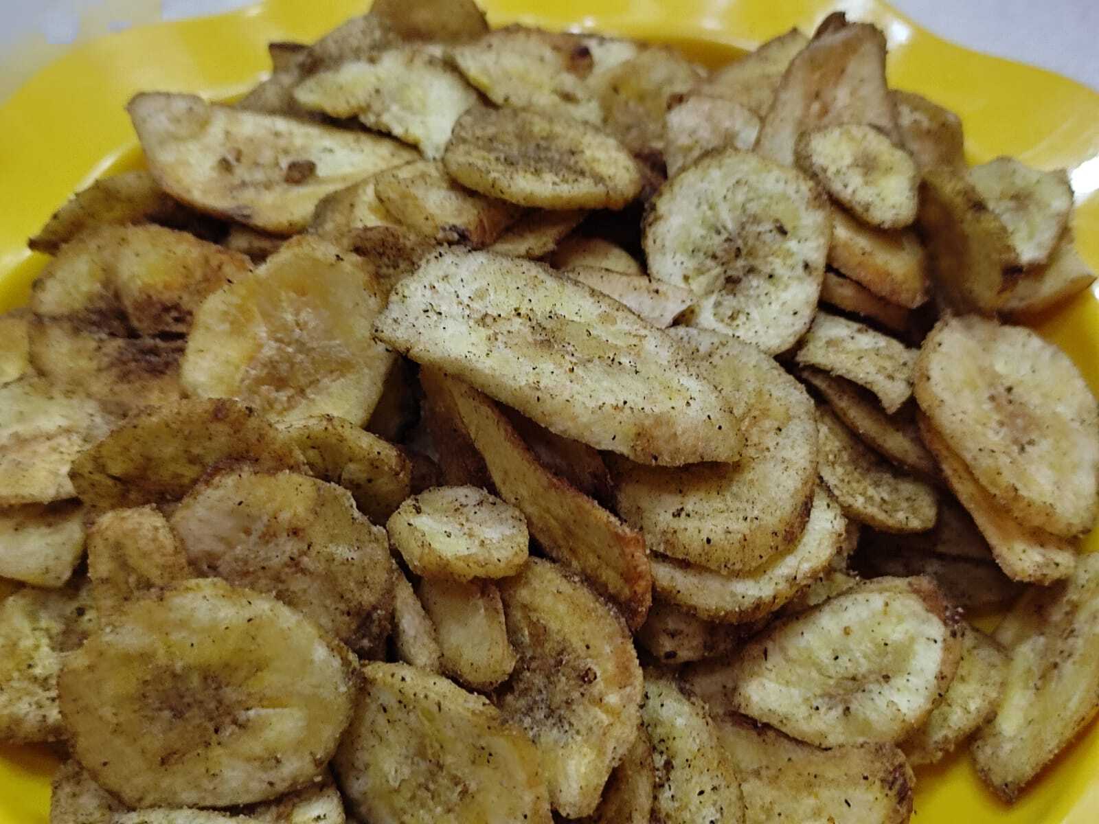 Spicy and Crispy DelightThese baked banana wafers offer a tantalizing burst of spicy flavor combined with a satisfyingly crispy texture. The round slices are visually appealing, and their golden yellow color enhances snacking enjoyment. Baked rather than fried, the wafers retain a crunchy bite without excess oil, providing a healthier alternative to conventional chips.